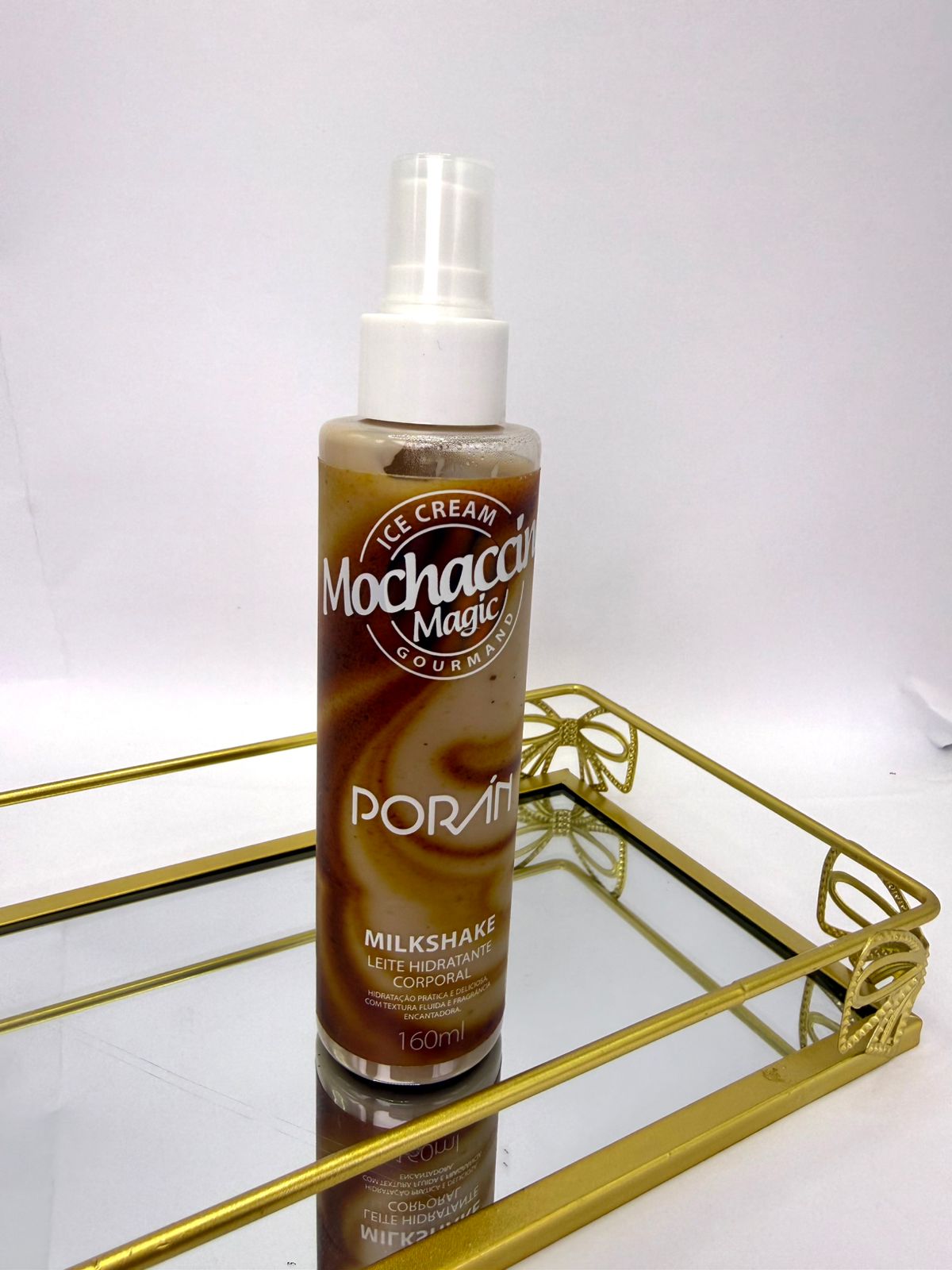 Loção corporal hidratante Mochaccio super cheirosa, textura leve e fluida.